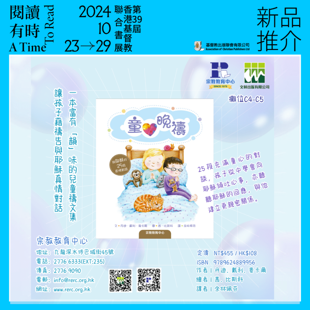 新品推介/宗教教育中心 基督教聯合書展2024 內容作者|丹迪.戴利.麥卡爾(Dandi Daley Mackall)出版社|宗教教育中心內容簡介本書以充滿真情的對話方式,展現小孩的禱告及耶穌的回應,透過易於唸誦的禱文,配以生動的插畫,幫助孩子在晚禱中向耶穌傾訴心事,同時聽到他的話,明白他的心意,與他的關係更親近。本書特色 禱文力求押韻,行文簡潔,便於小孩唸誦 每篇禱告以對話形式設計,富有童心 插畫生動,配合禱告內容連結 評分:分享此文:TweetPocket更多 按一下即可以電子郵件傳送連結給朋友(在新視窗中開啟) 電子郵件 點這裡列印(在新視窗中開啟) 列印 在 Tumblr 上分享喜歡 正在載入...