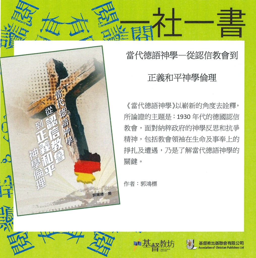 | 書籍/產品名稱 | 《當代德語神學:從認信教會到正義和平神學倫理》 Contemporary German Theologies: From the Confessing Church to Theological Ethics of Justice and Peace |