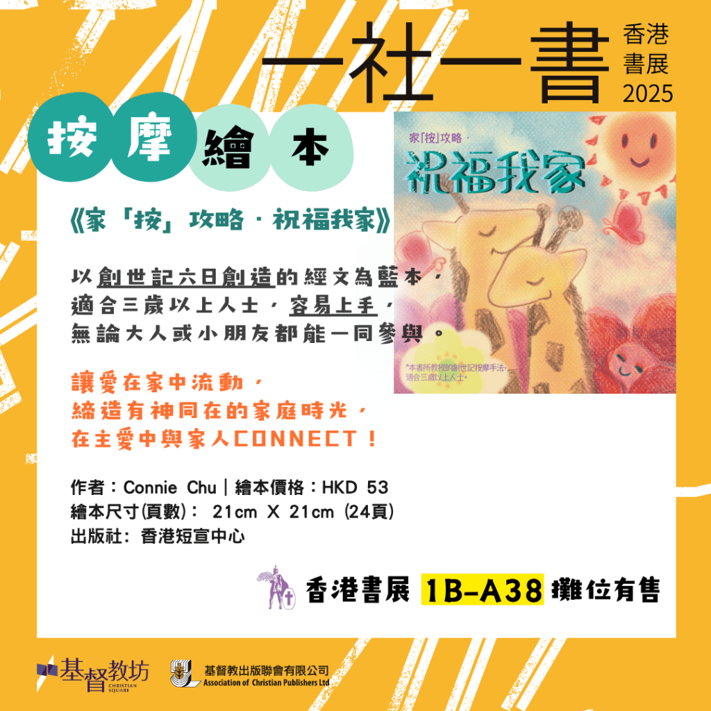 | 書籍/產品特點 | 你是否渴望在忙碌的生活中,與家人建立更親密的關係?全新繪本《家按攻略.祝福我家》正是為香港家庭而設,結合《創世記》六日創造的經文,設計出簡單易學的按摩手法。這本繪本不僅提供實用的按摩技巧,更著重於彼此服侍與感恩的心態,讓家人之間透過實際行動表達愛與關懷。過程中,你會體驗到身心的放鬆、情感的交流,並在 神的話語中尋回家的溫暖與祝福。這套按摩手法適合三歲以上人士,容易上手,無論大人或小朋友都能一同參與。 |