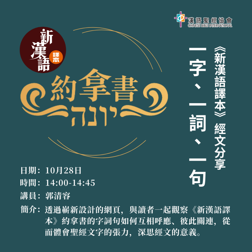台上活動區/漢語聖經協會 基督教聯合書展2024 評分:分享此文:TweetPocket更多 按一下即可以電子郵件傳送連結給朋友(在新視窗中開啟) 電子郵件 點這裡列印(在新視窗中開啟) 列印 在 Tumblr 上分享喜歡 正在載入...