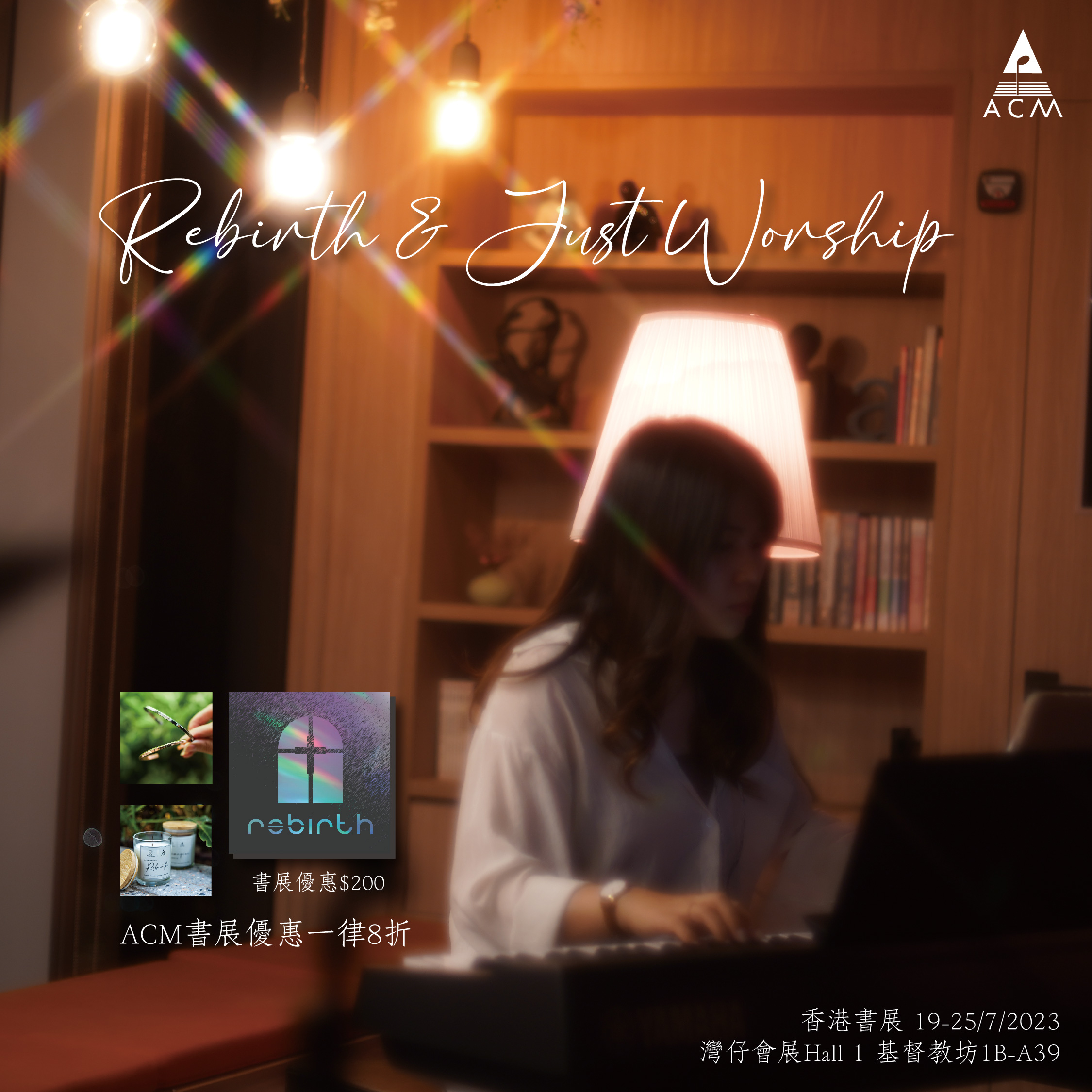 ![]() | HKACM @ 香港書展2023 [ Rebirth & Just Worship ] RE:BIRTH重生 數碼專輯 書展優惠 $200 ACM 書展優惠一律8折 香港書展 19-25/7/2023 灣仔會展Hall 1 基督教坊 1B-A39 CMDA/真証傳播攤位 7號 HKACM專櫃 |