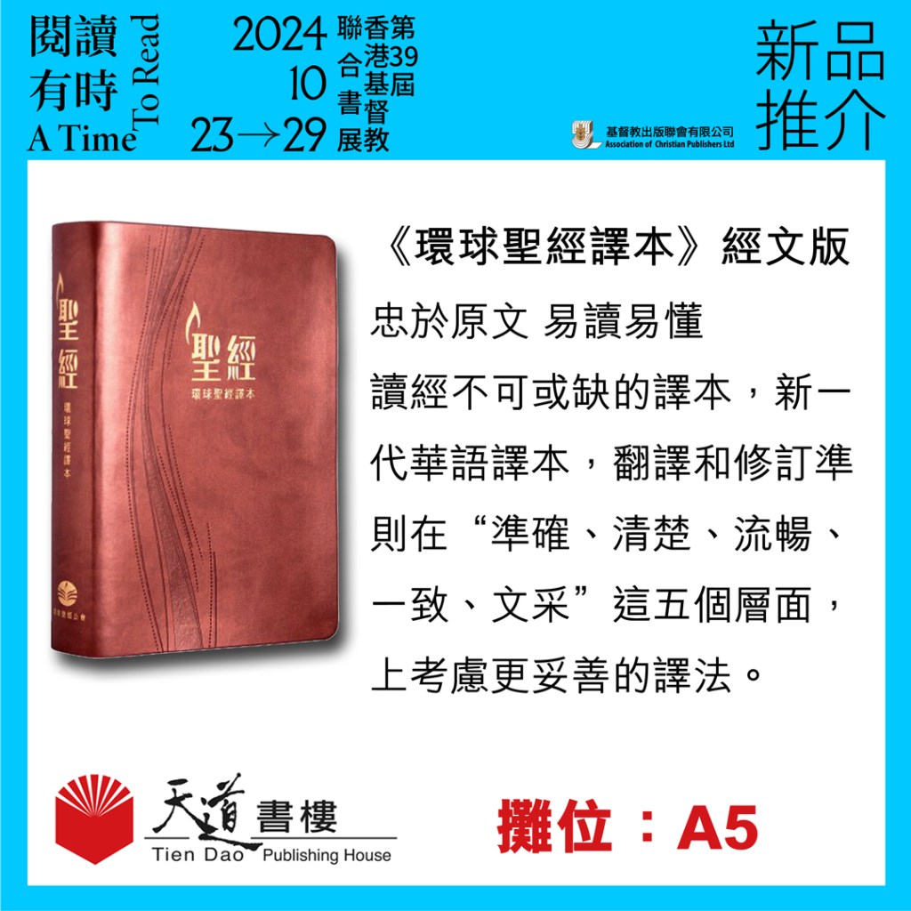 新品推介/天道書樓 基督教聯合書展2024 內容《環球聖經譯本》與史上任何譯本一樣,無論翻譯團隊付出多少心血和努力,無論怎樣推敲斟酌、千錘百煉,仍不免有其限制和缺失。謹願那開恩賜下聖言的主,也以祂的恩典覆蓋我們,彌補我們的不足,把《環球聖經譯本》化作蒙祂悅納的馨香祭物,藉以賜福讀者,讓他們更準確清楚地明白祂的話語,更深刻地認識、更熱切地愛慕聖經所見證的耶穌基督。連結 評分:分享此文:Tweet更多 以電子郵件將連結傳送給朋友(在新視窗中開啟) 電子郵件 列印(在新視窗中開啟) 列印 在 Tumblr 上分享喜歡 正在載入...