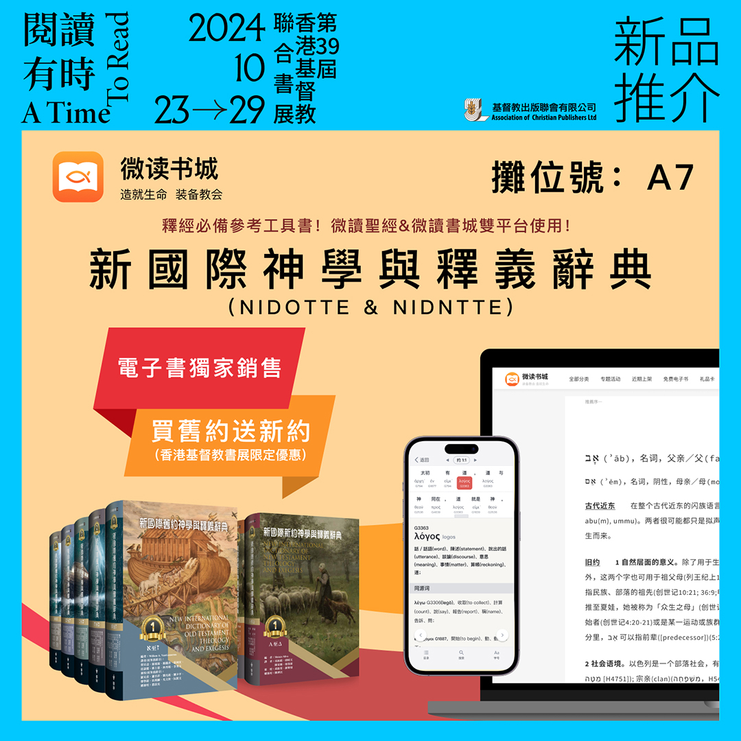 新品推介/微讀聖經 基督教聯合書展2024 內容【電子版】新國際新約神學與釋義辭典(NIDNTTE,New International Dictionary of New Testament Theology and Exegesis)和新國際舊約神學與釋義辭典(NIDOTTE,New International Dictionary of Old Testament Theology and Exegesis)連結 評分:分享此文:TweetPocket更多 按一下即可以電子郵件傳送連結給朋友(在新視窗中開啟) 電子郵件 點這裡列印(在新視窗中開啟) 列印 在 Tumblr 上分享喜歡 正在載入...