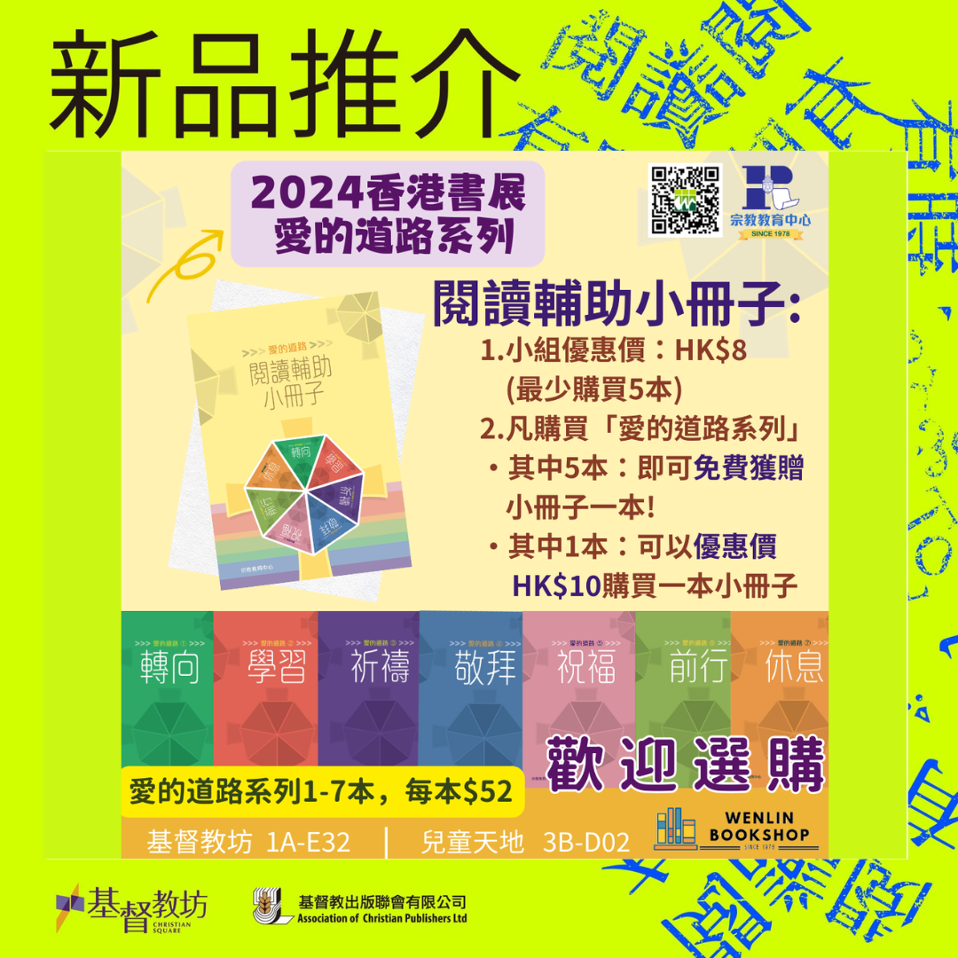 ![]() | 愛的道路系列|宗教教育中心.文林出版有限公司 在第79屆美國聖公會全國大會上,孔茂功主教(Michael B. Curry)呼籲教會實踐「愛的道路」。期後他提出七個操練,即:轉向、學習、祈禱、敬拜、祝福、前行、休息,幫助我們跟上帝、耶穌與鄰舍建立更深的關係,因為我們也學習怎樣更圓滿地活出洗禮的承諾、踐行愛的道路。 「愛的道路系列」 1. 《轉向》 校正生命方向 2. 《學習》 研讀聖經話語 3. 《祈禱》 祈求上帝臨在 4. 《敬拜》 一同聚集主前 5. 《祝福》 以愛祝福他人 6. 《前行》 努力作好見證 7. 《休息》 享受安息時刻 本系列備有《閱讀輔助小冊子》,可以深化所學,激發反思,連繫生活,活出信仰。 立即試閱: 愛的道路系列 |