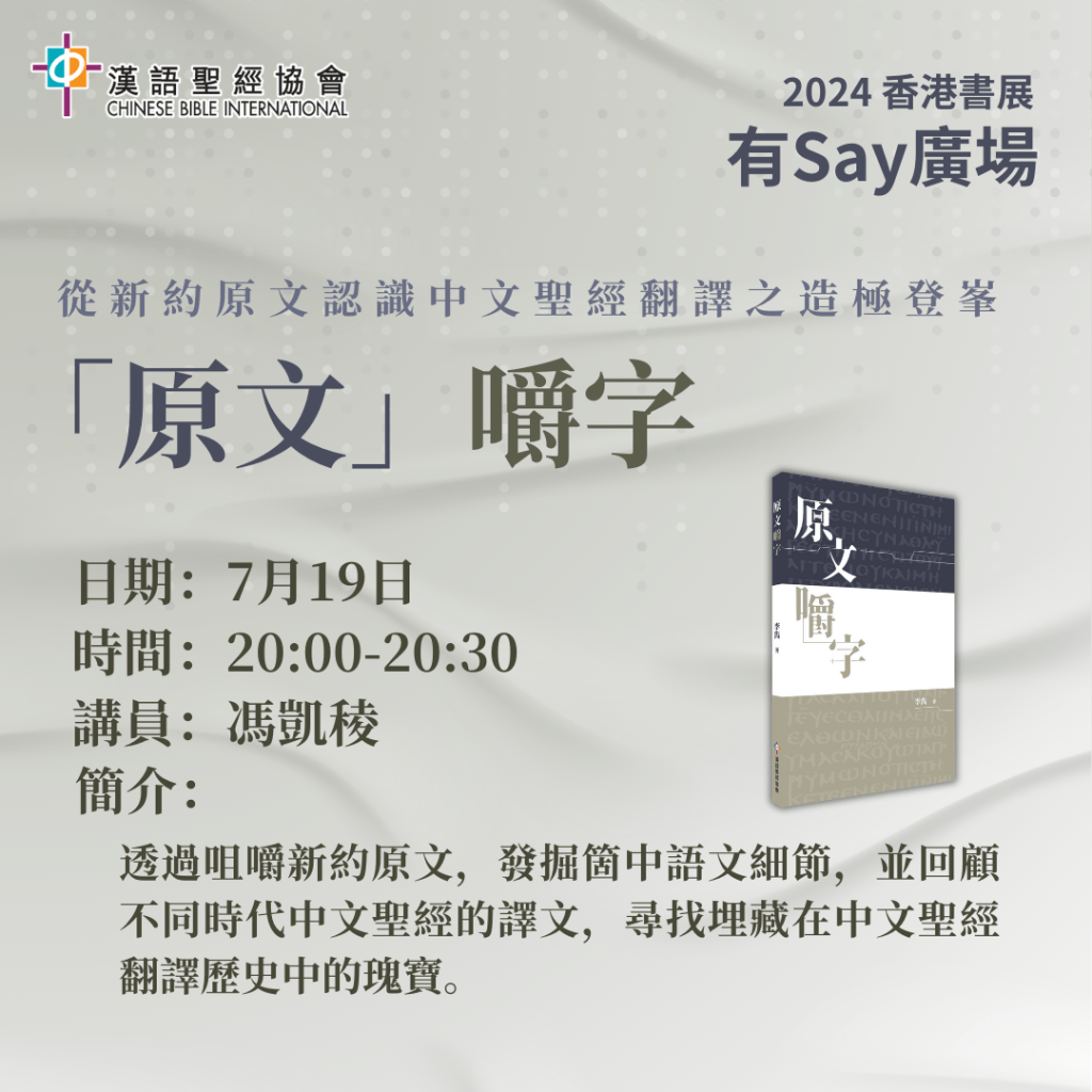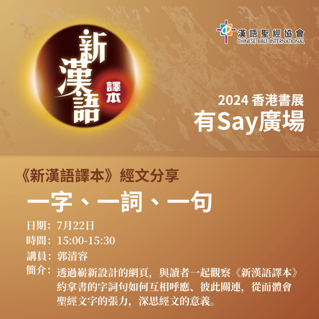 有SAY廣場節目 2024-漢語聖經 香港書展2024 評分:分享此文:TweetPocket更多 按一下即可以電子郵件傳送連結給朋友(在新視窗中開啟) 電子郵件 點這裡列印(在新視窗中開啟) 列印 在 Tumblr 上分享喜歡 正在載入...