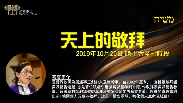講員簡介:莫莊雅牧師為榮耀事工創辦人及總幹事,自2002年至今, 推動關心以色列福音工作,以推動敬拜讚美及禱告來托住聖工;亦是首位牧者引進號角、旌旗及豎琴敬拜到香港, 作敬拜讚美及禱告教導。藉著莫牧師教導聖經真理及號角和豎琴的屬靈意義,將神的真理實踐出來! 擴闊個人及城市敬拜、讚美、禱告領域,轉化個人生命及社區!