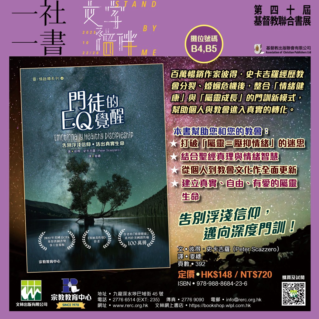 | 精句︰ 《門徒的EQ覺醒》帶領你打破事工疲乏的循環!從情緒覺醒開始,透過自評表與靈性操練,先與主同在,再與自己和解,才能真正活出扎根真理的生命。這是一場從「心」出發的革新之旅,引導你從浮淺信仰走向深度轉化! |