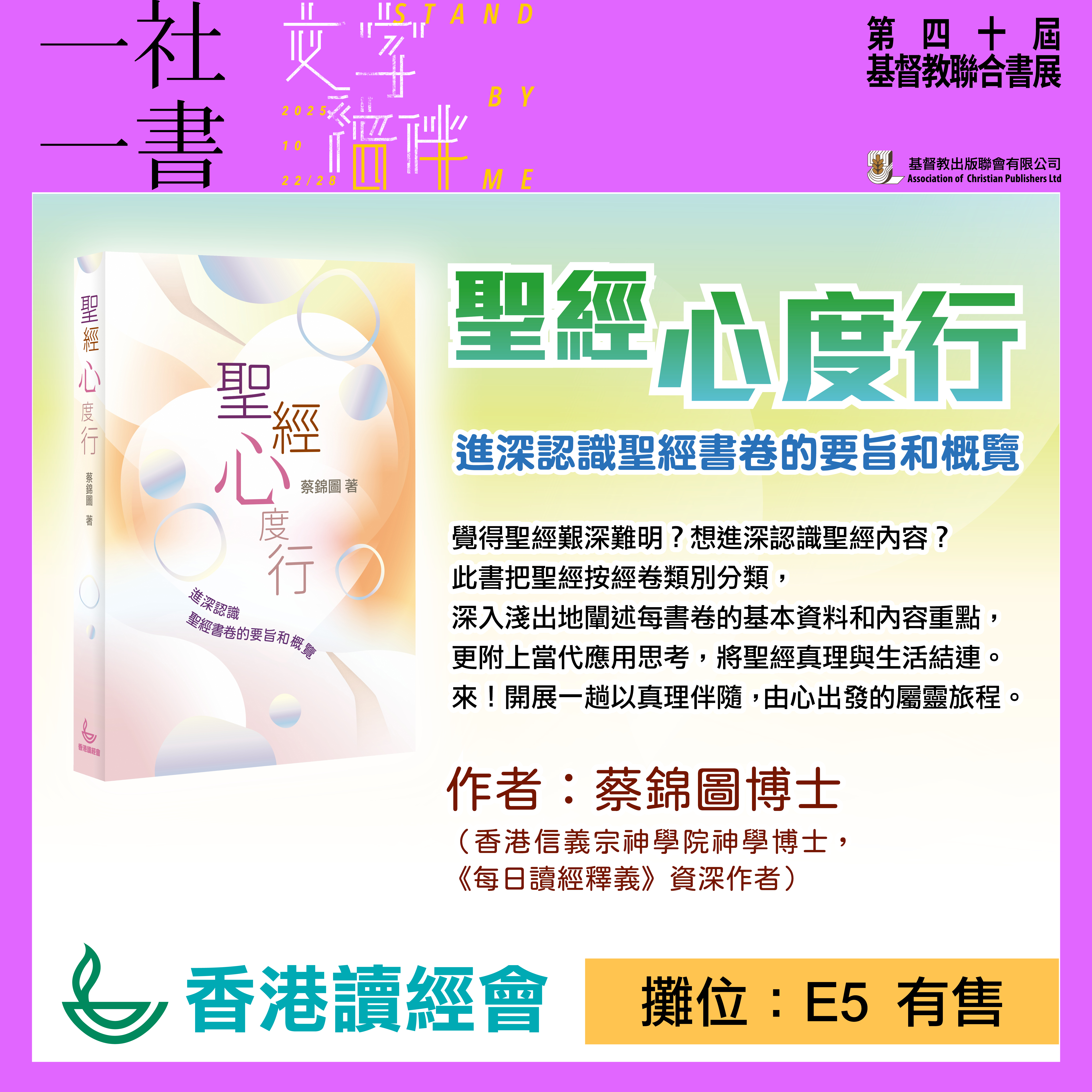 | 本書特點︰ 覺得聖經艱深難明?想進深認識聖經內容? 蔡錦圖博士把聖經按經卷類別分類,探討每個類別的意義,以及在讀經時要注意的重點,繼而簡明扼要展現每書卷的基本資料和內容重點,幫助讀者輕掌握聖經概要,更附上當代應用思考,將聖經真理與生活結連。 來!開展一趟以真理伴隨,由心出發的屬靈旅程。 *這本書可與蔡博士另一部作品《神的話天天伴我行》配合閱讀,幫助你在一年內讀完整本聖經,建立穩定的讀經生活。 黃偉強 香港讀經會總幹事 |