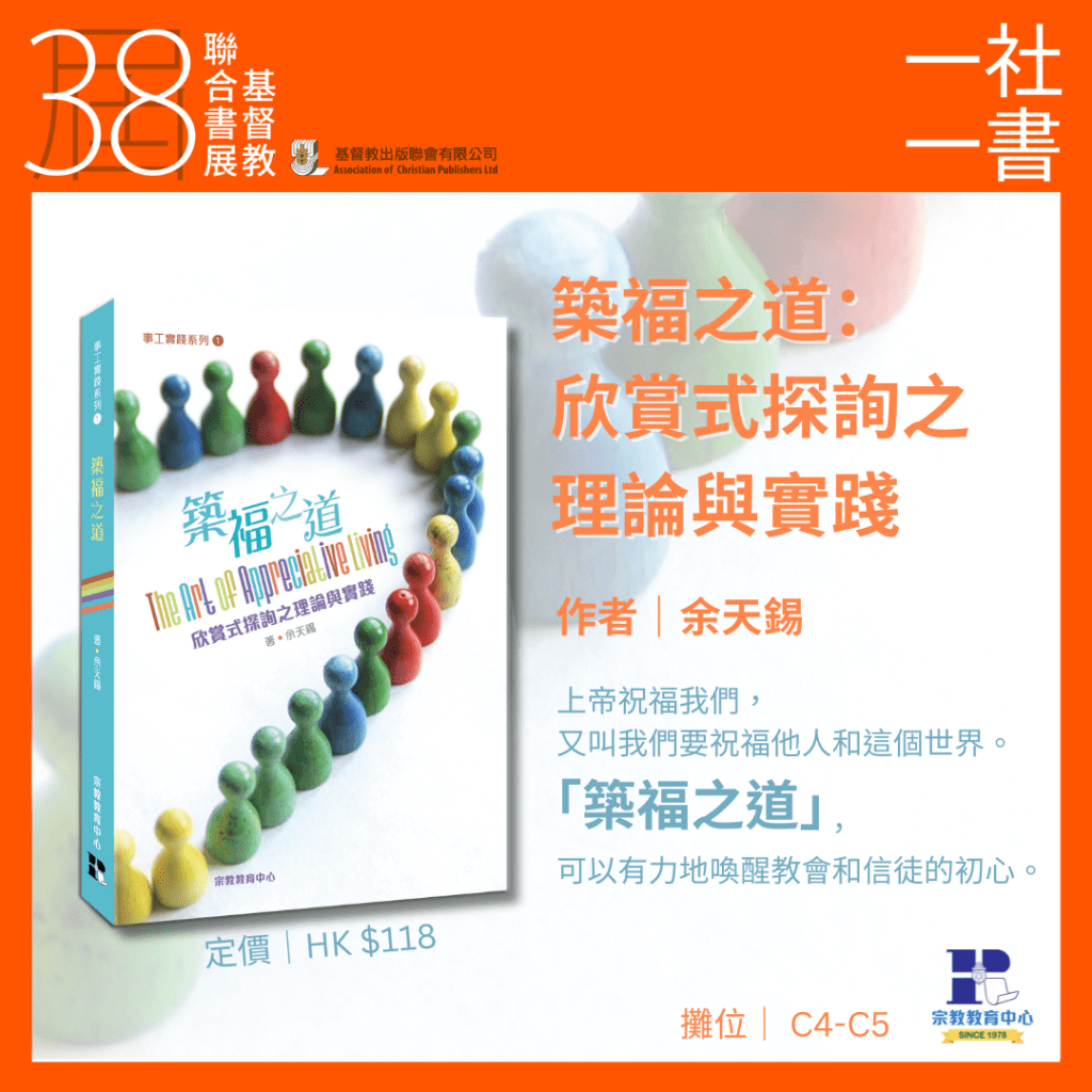 | 書籍/產品特點 | 「築福之道」借鑑工商管理學的「欣賞式探詢」原則,結合心理學和神學而成為一套理論和方法,指在處理磨擦和意見分歧,適用於個人修身、人際關係,以至教會組織、運作和計劃,促進人際相處和團體合作。本書先從理論入手,再由個人至組織,教授築福之道。當中另附多篇作業,供讀者由淺入深練習築福之道。讀者若能按照書中的步驟循序漸進學習,就能領受築福之道,隨時隨地「築福」他人。 |
