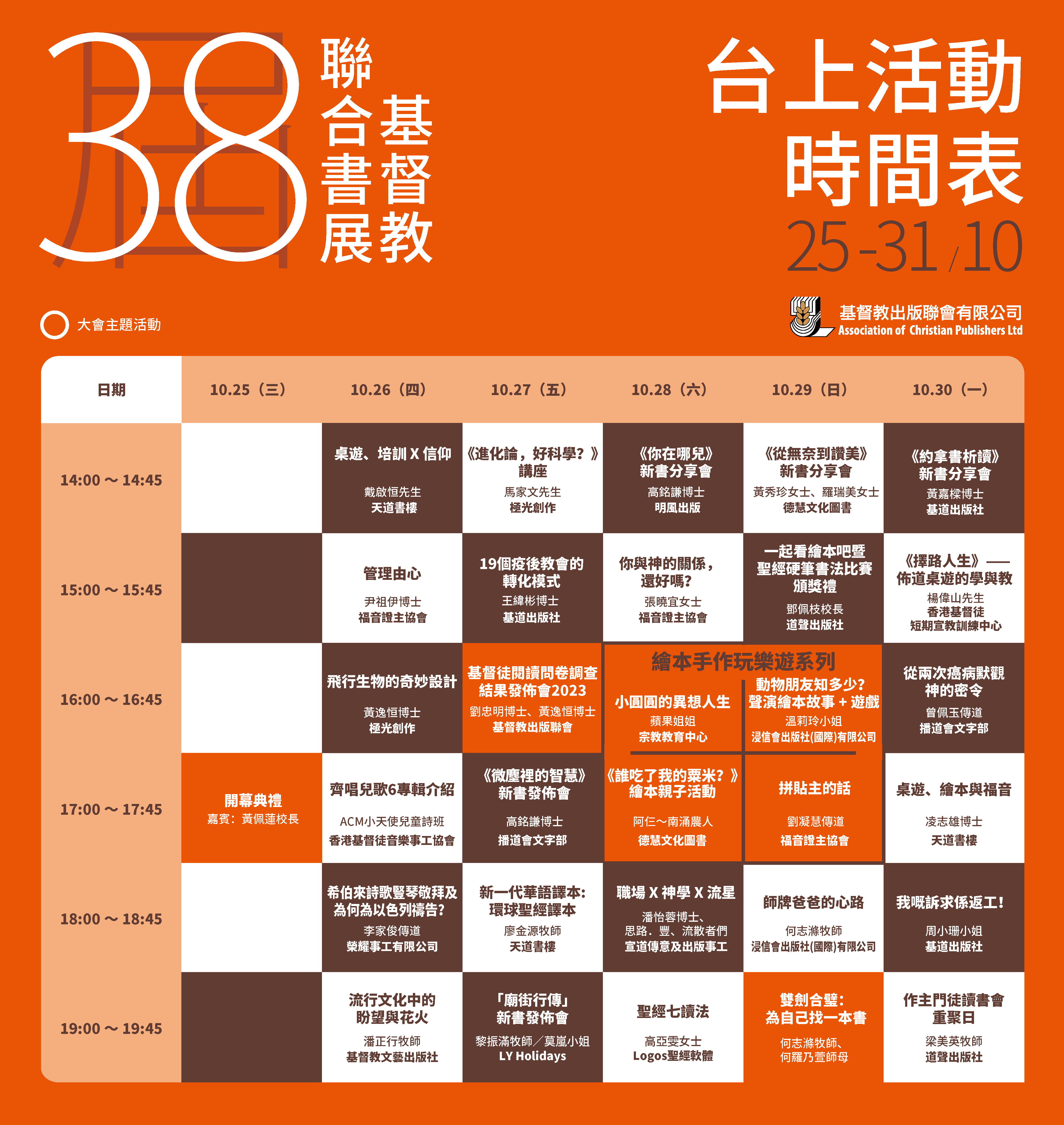 | 26/10 (四) | 2:00-2:45 | 桌遊、培訓 X 信仰 | 戴啟恒先生 | |