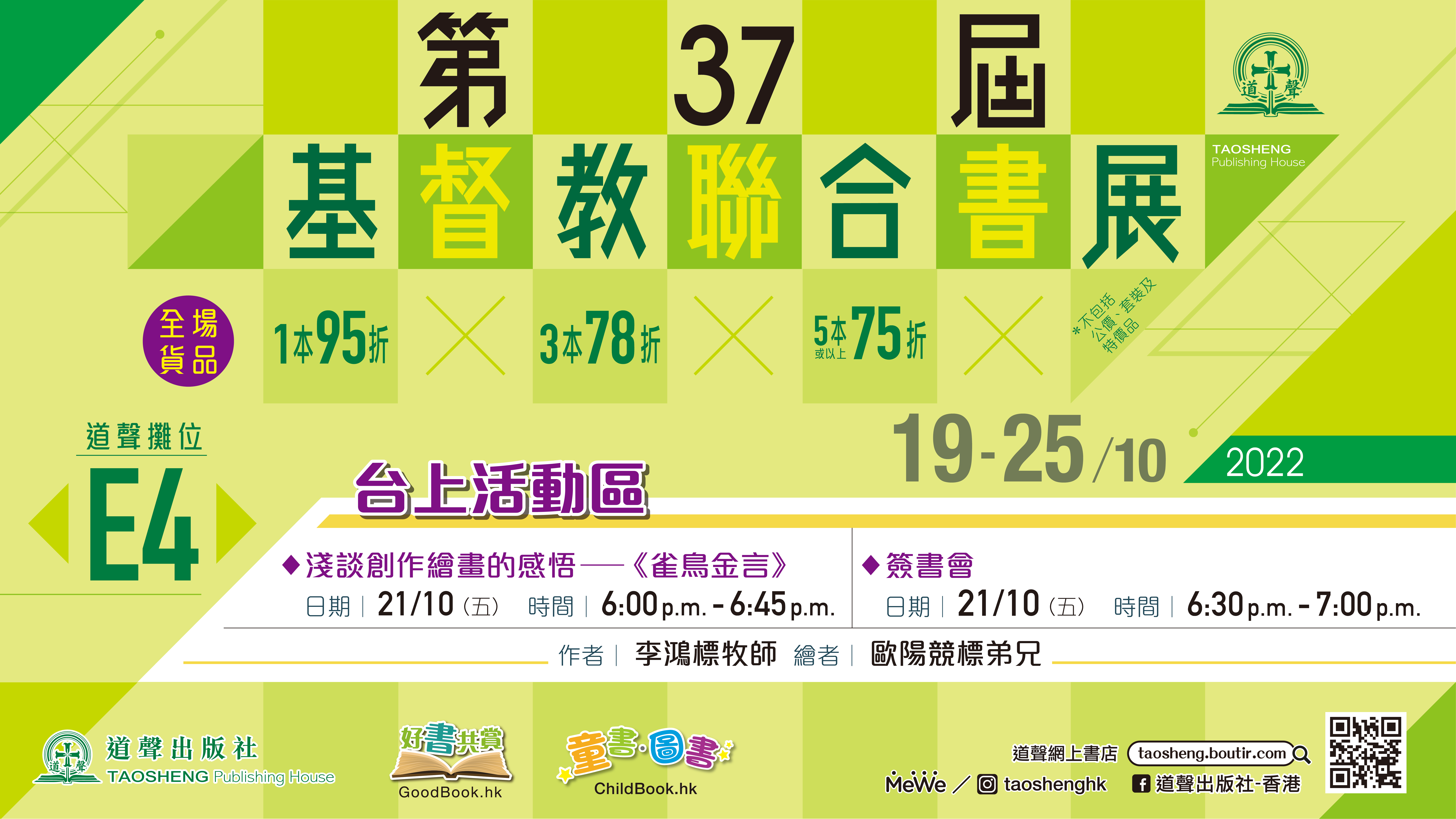 攤位廣告 基督教聯合書展2022 評分:分享此文:TweetPocket更多 按一下即可以電子郵件傳送連結給朋友(在新視窗中開啟) 電子郵件 點這裡列印(在新視窗中開啟) 列印 在 Tumblr 上分享喜歡 正在載入...