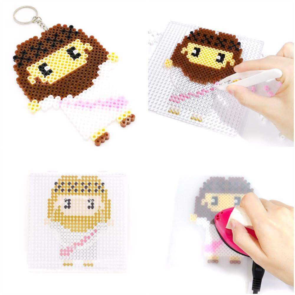 不同色彩的小豆,左拼加拼,拼湊出美麗的圖案。加熱更會黏合起來,可作杯墊,匙扣等。