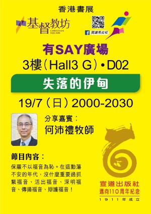 失落的伊甸 Posted on 2020/06/01 by acpbookfair 香港書展2020|基督教坊有SAY廣場(Hall 3G-D02) 7月19日(日) 晚上8:00-8:30 ▍失落的伊甸 主講:何沛禮牧師 內容:保羅不以福音為恥。在這動蕩不安的年代,沒什麼重要過抓緊福音、活出福音、深明福音、傳揚福音、辯護福音! 負責機構:宣道出版社(3G-D16) 分享此文:TweetPocket更多 按一下即可以電子郵件傳送連結給朋友(在新視窗中開啟) 電子郵件 點這裡列印(在新視窗中開啟) 列印 在 Tumblr 上分享喜歡 正在載入...