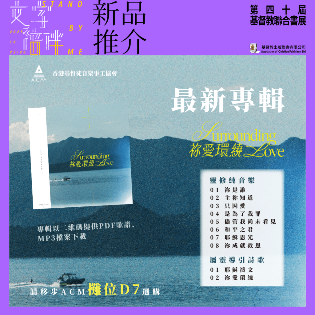 | ACM靈修專輯2:《祢愛環繞》共收錄八首ACM詩歌的純音樂靈修版本,透過鋼琴、結他及大提琴重新演繹詩歌,讓聽眾進入安靜、與主相遇。 專輯以「預苦期」及「將臨期」為題,亦附有靈修默想材料,鼓勵聽眾於節期期間使用,默念基督的捨身及降生。 專輯亦收錄兩首屬靈導引詩歌【祢愛環繞】及【耶穌禱文】,藉著覺察自己與神的親密關係,感受被天父環繞的愛,得著從內而外的生命動力。 |