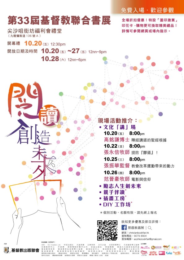 基督教聯合書展2017 Save Save Save 評分:分享此文:TweetPocket更多 按一下即可以電子郵件傳送連結給朋友(在新視窗中開啟) 電子郵件 點這裡列印(在新視窗中開啟) 列印 在 Tumblr 上分享喜歡 正在載入...