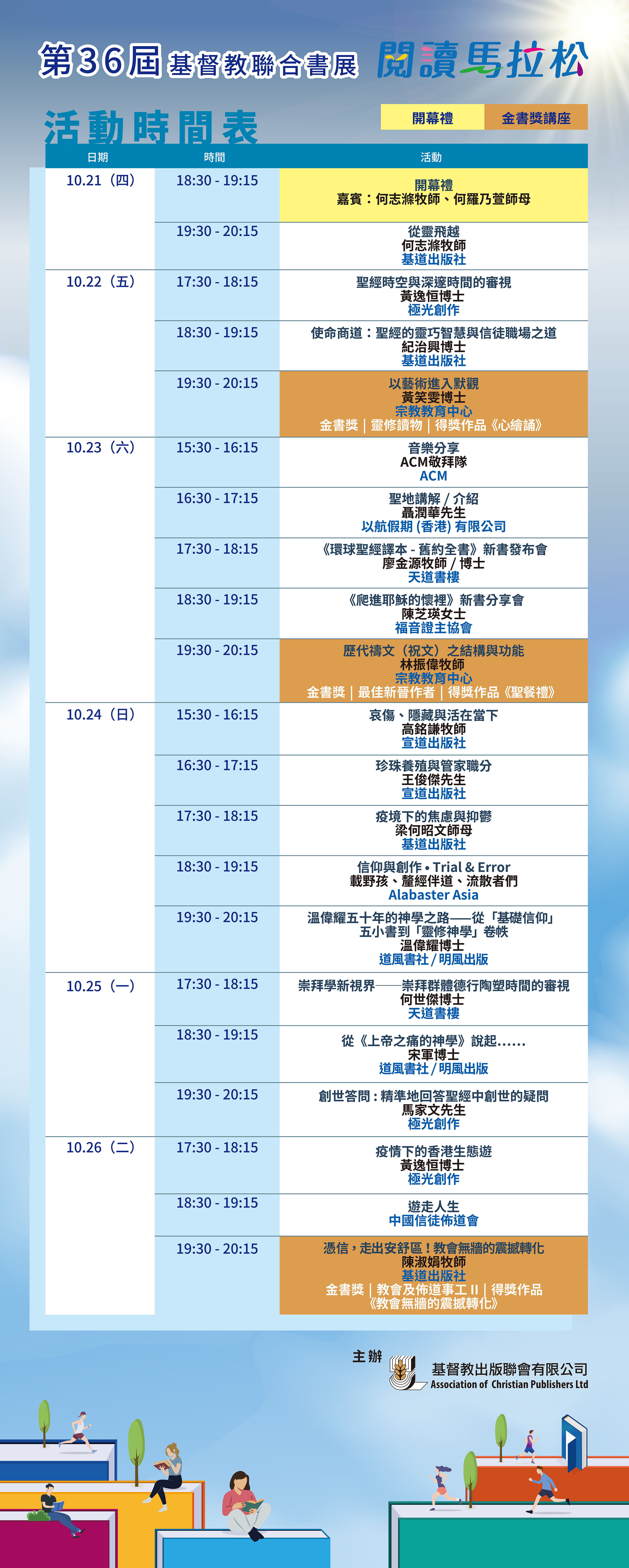 講座 2021 第36屆基督教聯合書展|閱讀馬拉松 2021.10.21-27|尖沙咀街坊福利會禮堂 歡迎到場參加講座活動與作者會面交流!更可到「基督教書展」Facebook 留意我們為你直播的現場活動! 評分:分享此文:Tweet更多 以電子郵件將連結傳送給朋友(在新視窗中開啟) 電子郵件 列印(在新視窗中開啟) 列印 在 Tumblr 上分享喜歡 正在載入...