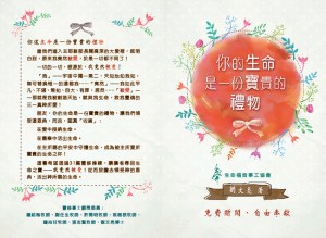 朋友,你知道「你的生命是一份寶貴的禮物」嗎?當我們進入主耶穌那長闊高深的大愛裡,就明白到,原來我竟然被愛,於是一切都不同了!