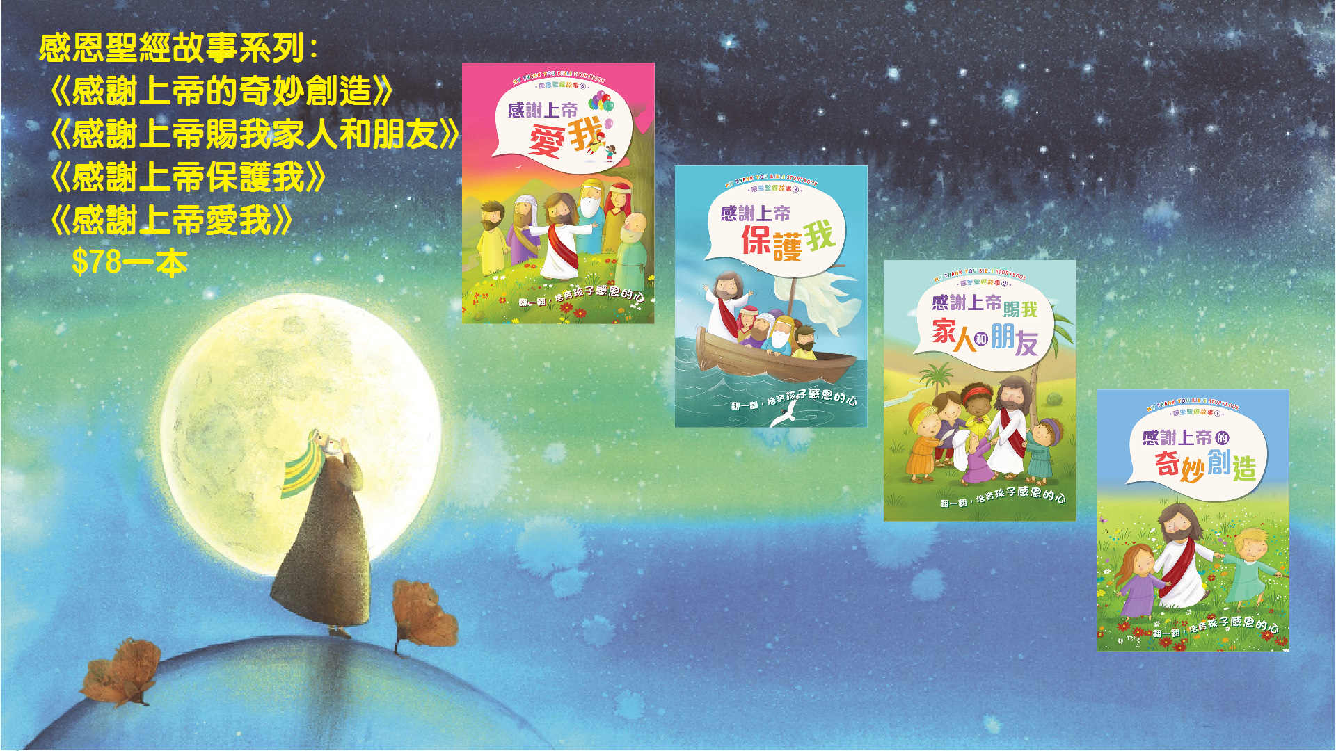 小孩子的心靈不容忽視,本套書透過不同的聖經故事、禱文和問題,讓小朋友發現原來上帝一直就在你身邊,從而學會感恩。無論得時與不得時,小孩都能作出感謝上帝的禱告。書中附有揭頁,讓小朋友主動翻開聖經,認識信仰。