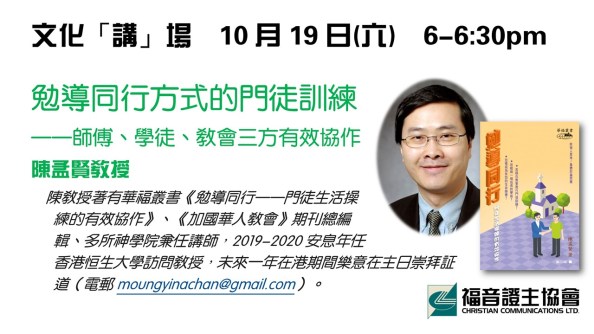 記起初信之年,因得著教會安排個人栽培,自己的靈命得以茁壯成長。其實在天路上,的確需要同行者互助互勉。陳孟賢博士的《勉導同行》理論實踐兼備,助我們建立真摯同行的關係,成為健康的門徒。