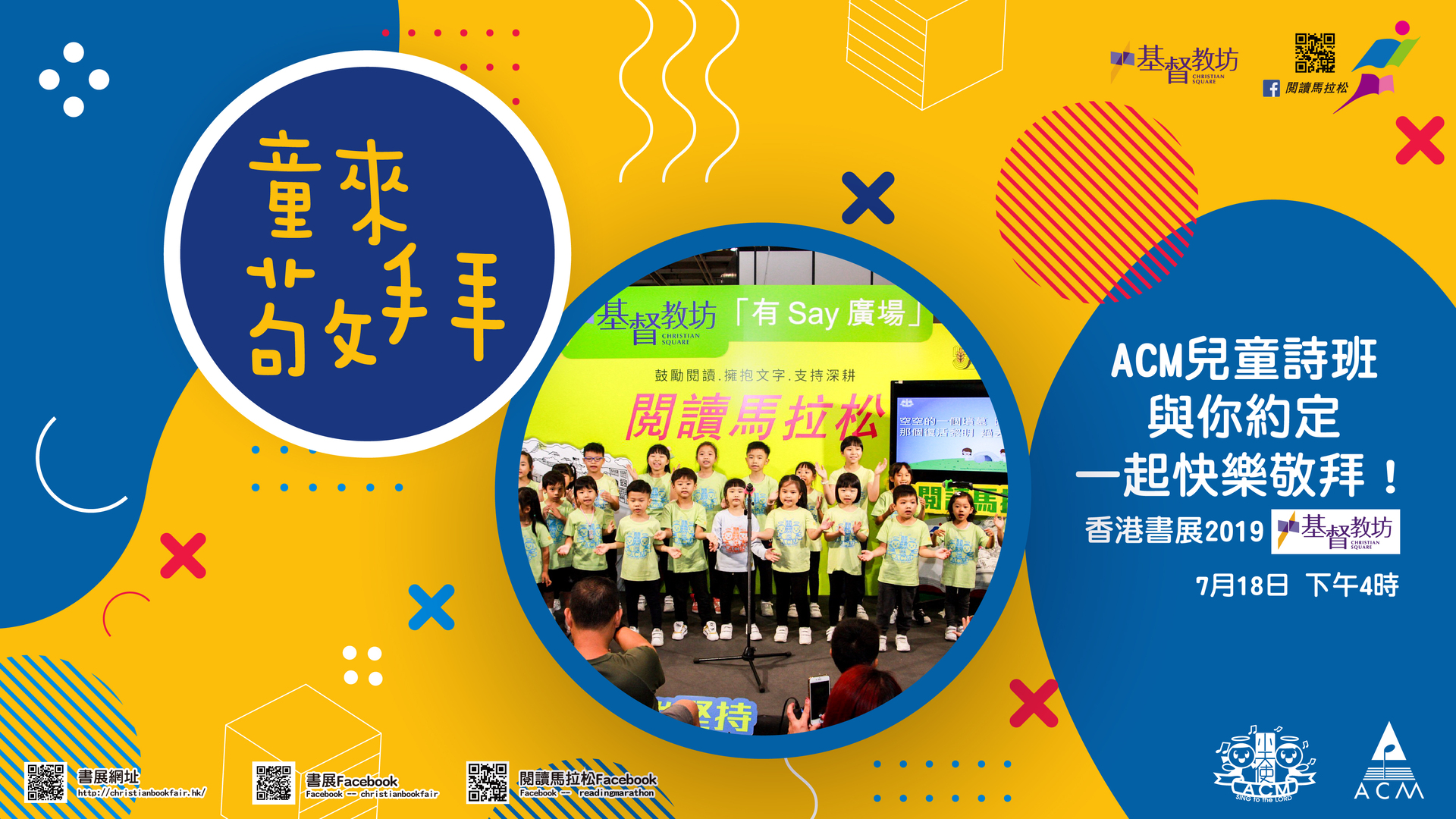 活動內容:ACM兒童詩班將會在「有Say廣場」現場帶領觀眾唱兒歌讚美主!