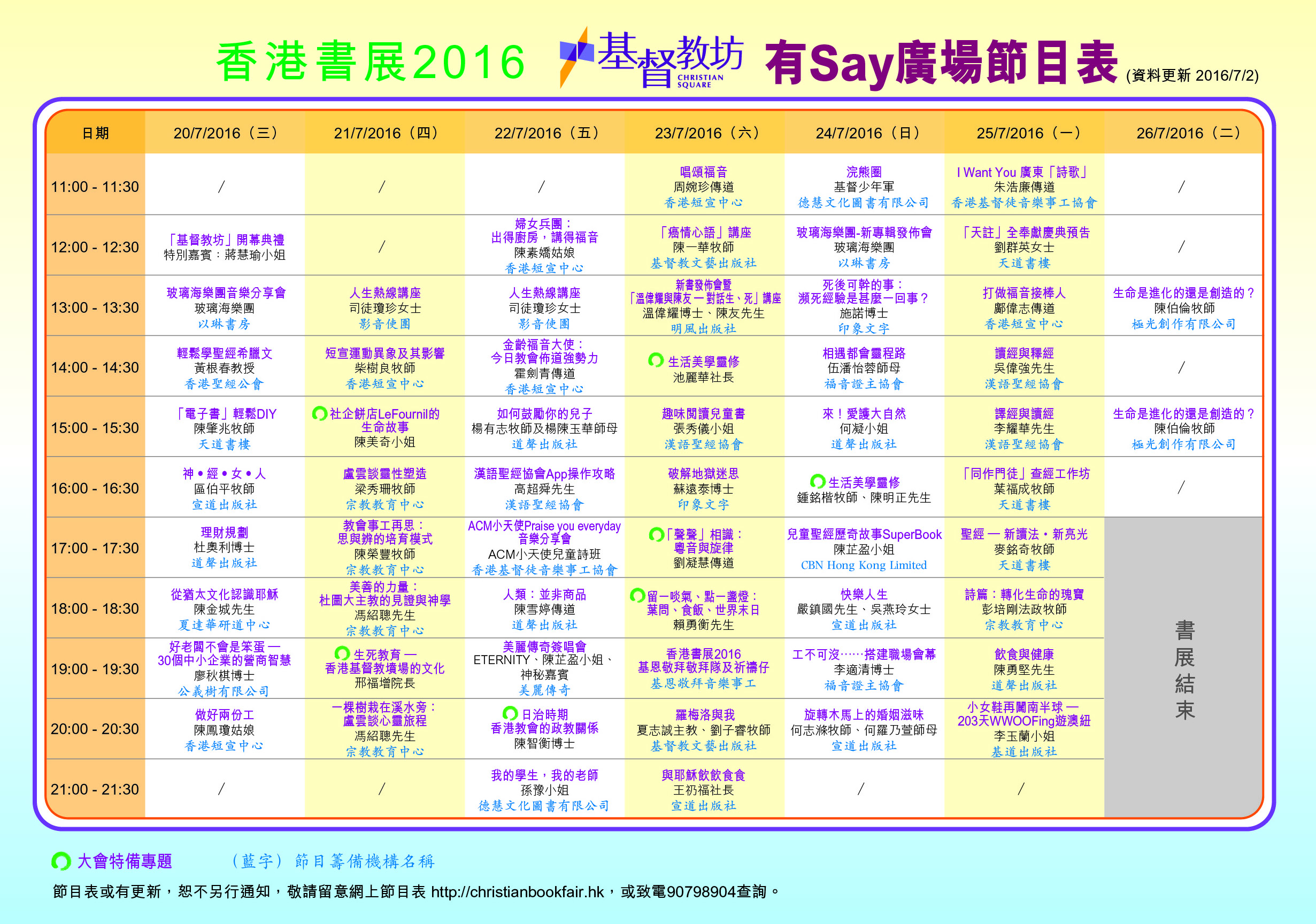 | 13:00-13:30 | 人生熱線講座宣 ——司徒瓊珍女士 (影音使團) |